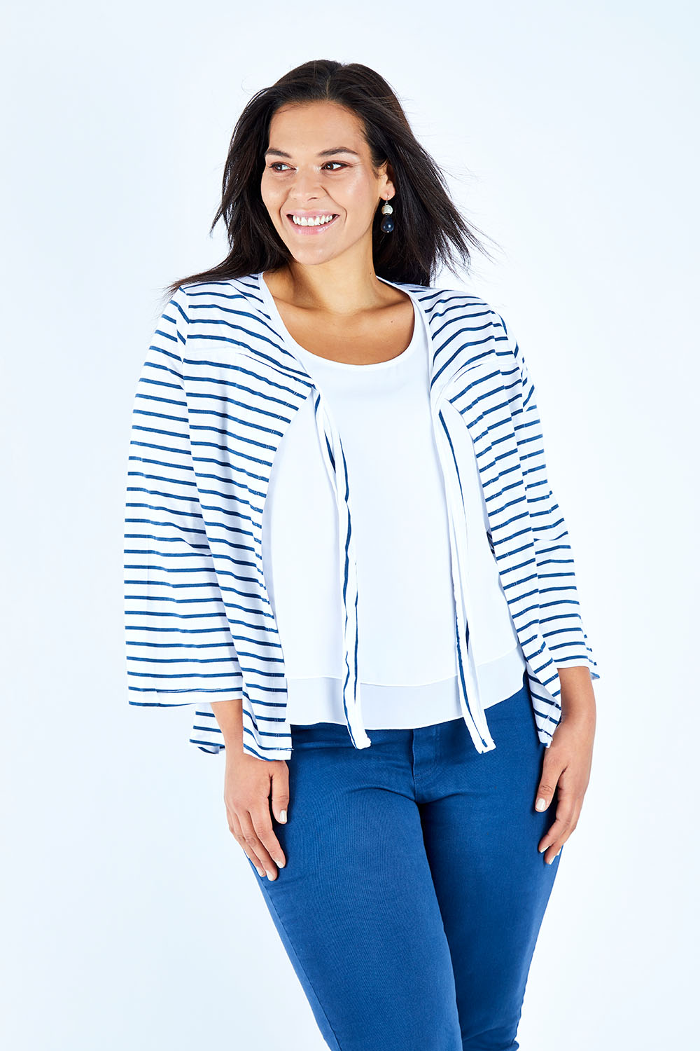 The navy and white stripe and cute tie detail at the neck makes it a fun and easy extra layer, perfectly suited to this time of year. Love, Rowena and the birdsnest girls x
