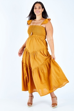 In a deep shade of mustard, the Sand Dune Dress is full of winsome boho enchantment. Complete with ruffle tiers, the ruched elastic bodice and frill shoulder straps ensures comfort as well as waist cinching style. The ruffle tiers are an extra bonus, team with boho accessories for a date night or pare it back with a sandal for during the day. Love, Rowena and the birdsnest girls x