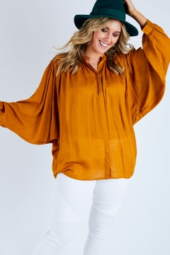 In rich mustard, and with relaxed draping thorughout, you will feel like a true bohemian goddess wearing this stunning piece. Additional features include long extended sleeves, v neckline and button through front. Team with white denim, tan boots and chunky jewellery for a delightfully bohemian inspired look. Love, Gabby and the birdsnest girls x