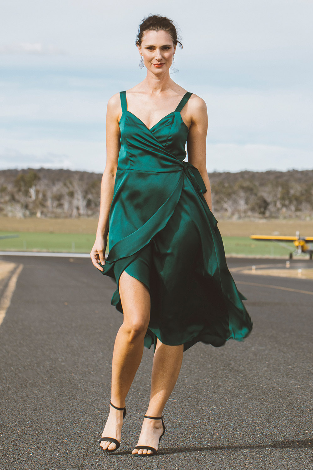 With functional wrap design, you can have confidence you are presenting your best self and the deep green, makes it heavenly elegant. The sleeveless and flowing skirt make the perfect combination for summer cocktail and can effortlessly be paired with black or nude. Take the evening in your stride and have the freedom to dance the night away. Love, Steph and the birdsnest girls x